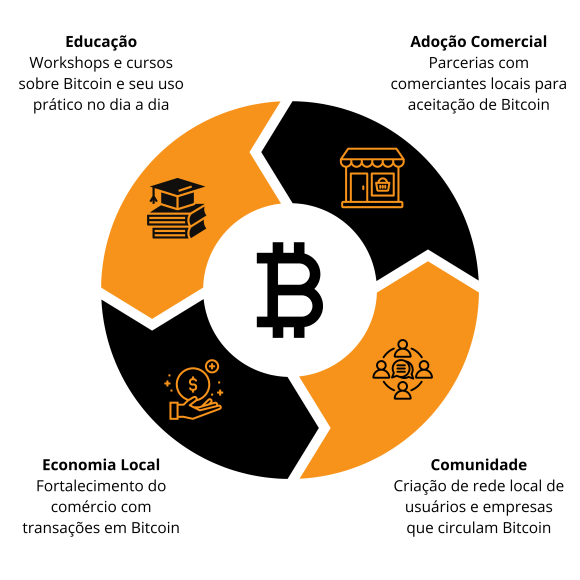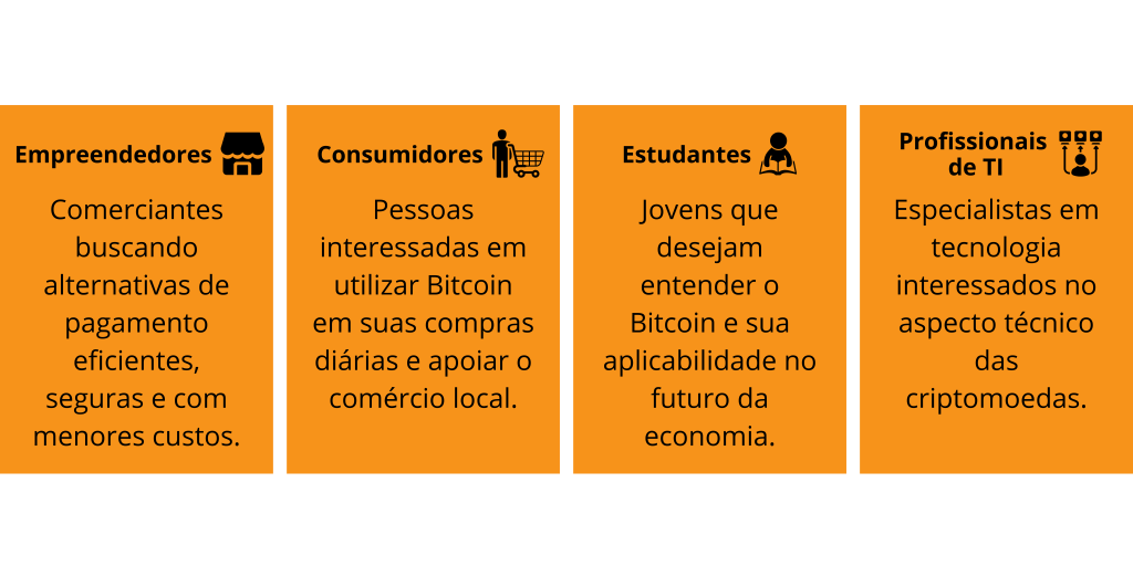 O projeto Cidade Bitcoin é direcionado a diversos segmentos da comunidade local, criando um ecossistema completo para a adoção da criptomoeda.